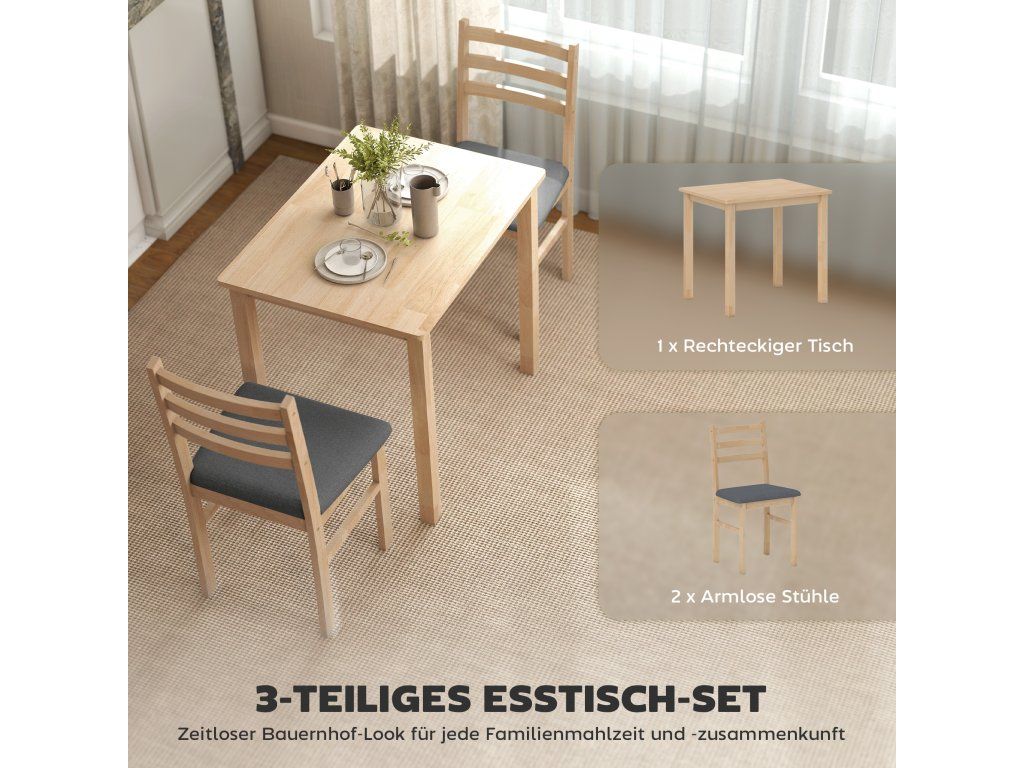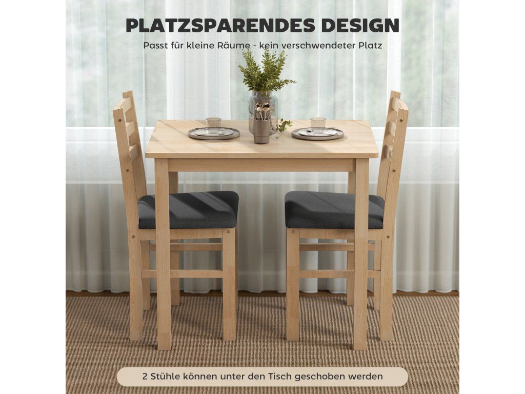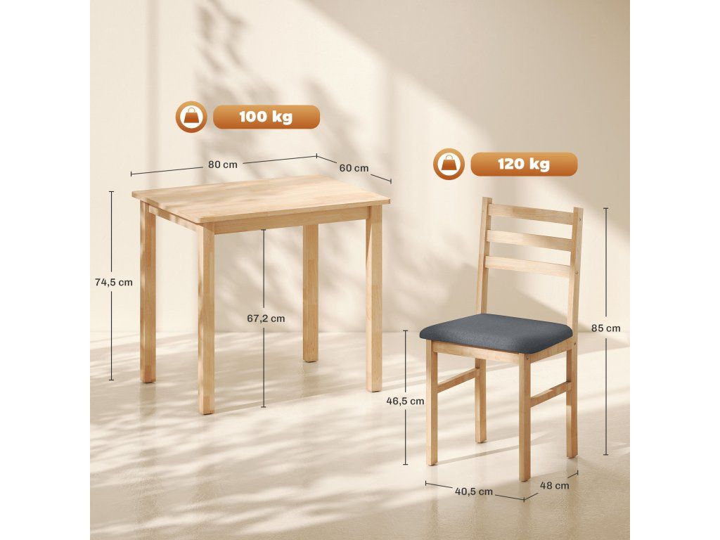 ✔ Obsahuje kuchyňský stůl a dvě židle, ideální do malých bytů nebo snídaňových koutů.