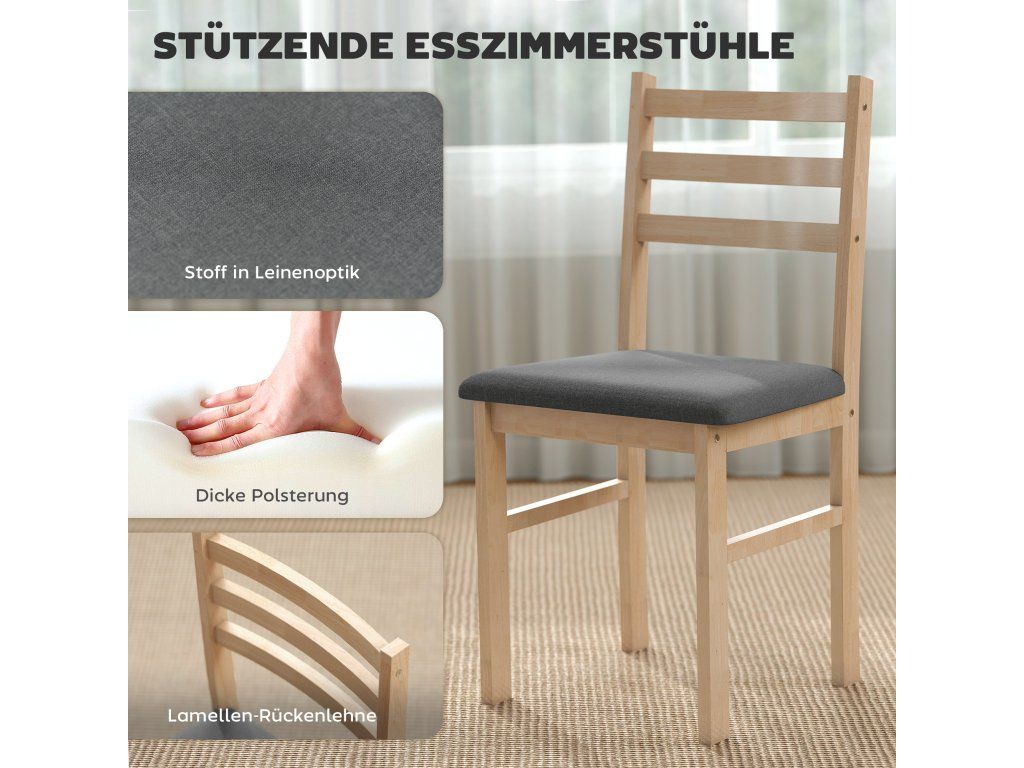 ✔ Pevná konstrukce jídelního setu z masivního dřeva a MDF zajišťuje pevnost a odolnost.