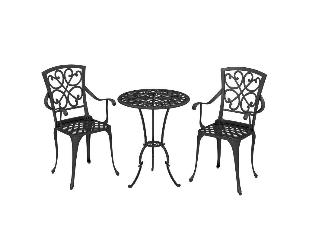 Chcete vdechnout svému balkonu nový život? Je frustrující, když vratký nábytek rezaví a spalující slunce kazí váš venkovní relax. Tato sada balkonového nábytku tento problém řeší. Tato bistro sada, vyrobená z odolného litého hliníku s elegantními detaily, nabízí dlouhotrvající útočiště. Centrální otvor pro slunečník ve stole vám zajistí, že si s vaší osobní bistro sadou budete moci pohodlně užívat nespočet slunečných odpolední.