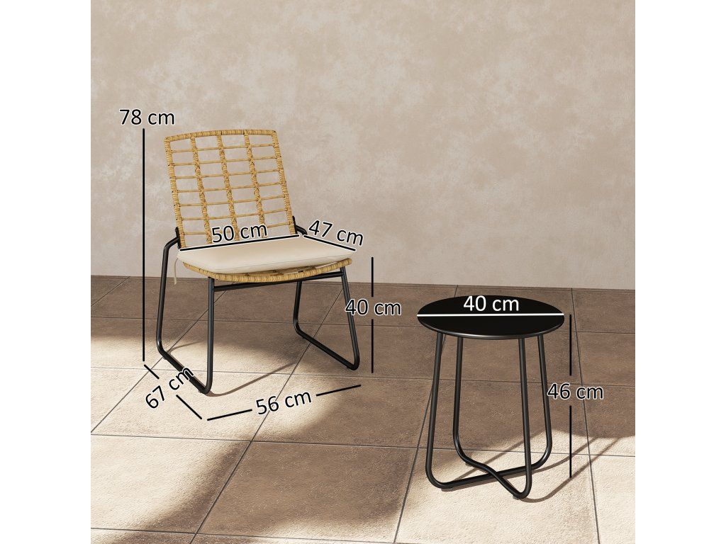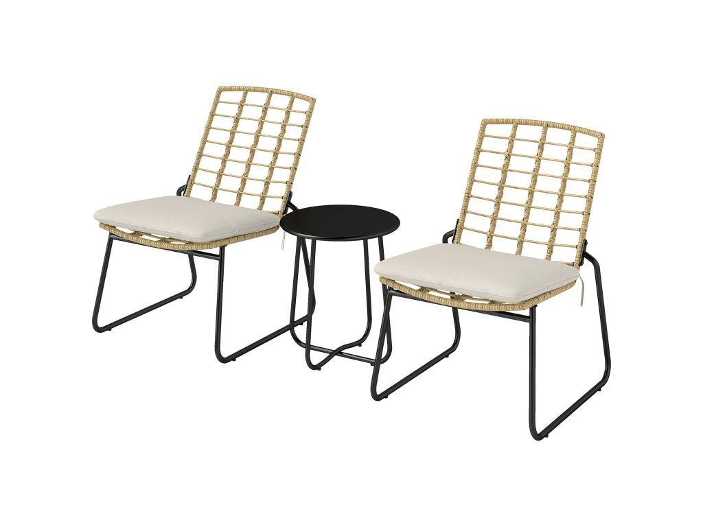 Objevte zahradní set nábytku s práškově lakovaným ocelovým rámem a ratanovým výpletem odolným proti UV záření. Ideální zahradní set na balkon nebo do zahrady se stohovatelným designem pro snadné skladování. Sestava nabízí pohodlí díky polštářům odolným proti stříkající vodě a robustní černé kovové desce stolu, která je zároveň odolná proti korozi. Ideální pro relaxaci venku!
