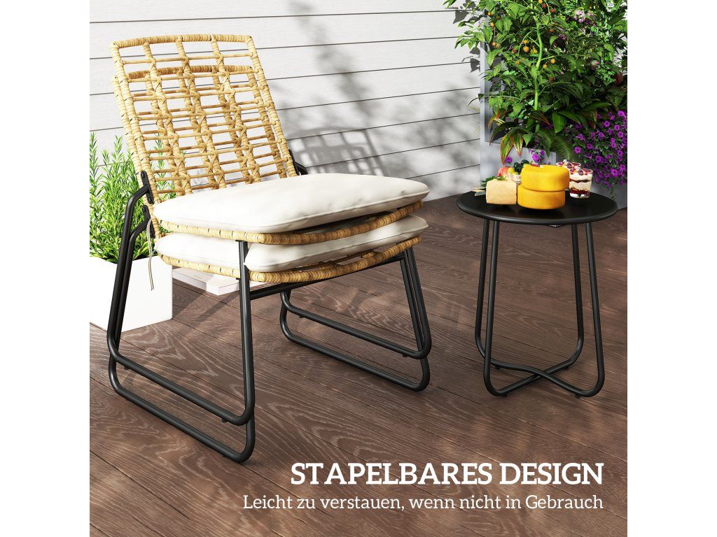 Stohovatelný design: Stohovatelné zahradní židle této sady nábytku jsou ideální do malých prostor a lze je snadno skladovat, když se nepoužívají. Ideální pro balkony, verandy nebo malé venkovní prostory.