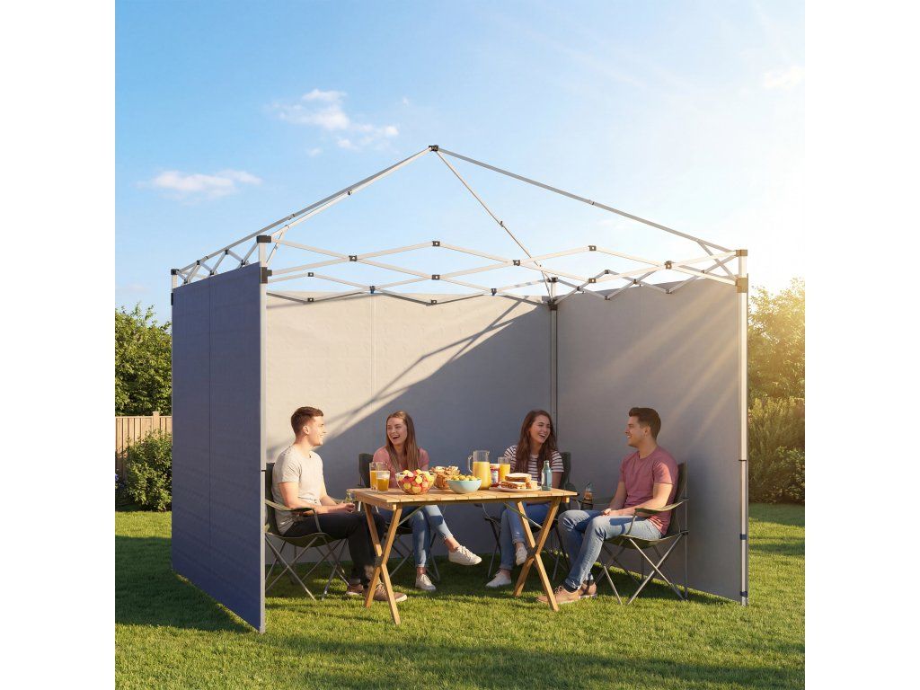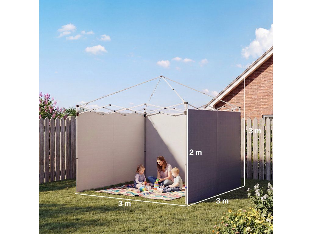 Proměňte svůj vyskakovací altán na soukromé útočiště s bočními stěnami. Tato 3dílná sada se hodí na rámy altánů 3 x 3 m a je ideální pro venkovní akce. Bočnice jsou vyrobeny z postříbřené 210D Oxford tkaniny s UPF 50+ ochranou a poskytují ochranu před škodlivým UV zářením a lehkým deštěm. Snadno se připevňují pomocí přiložených pásků na suchý zip, osvěží nastavení vašeho altánu a poskytují dodatečné soukromí a pohodlí.