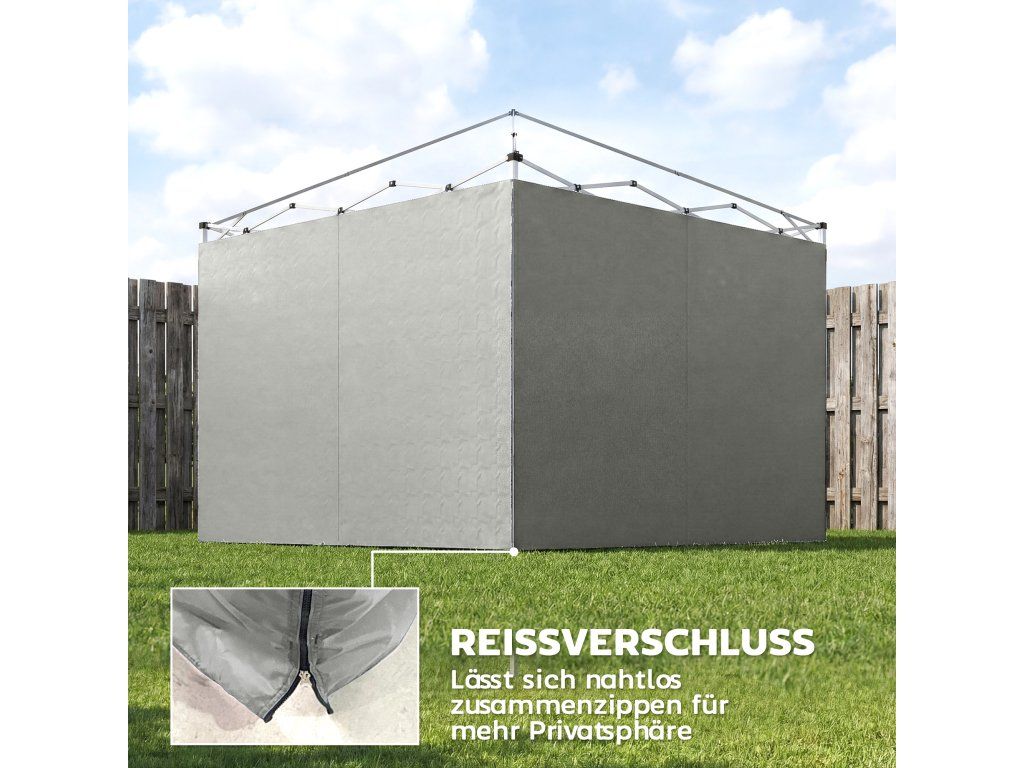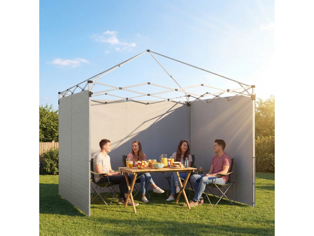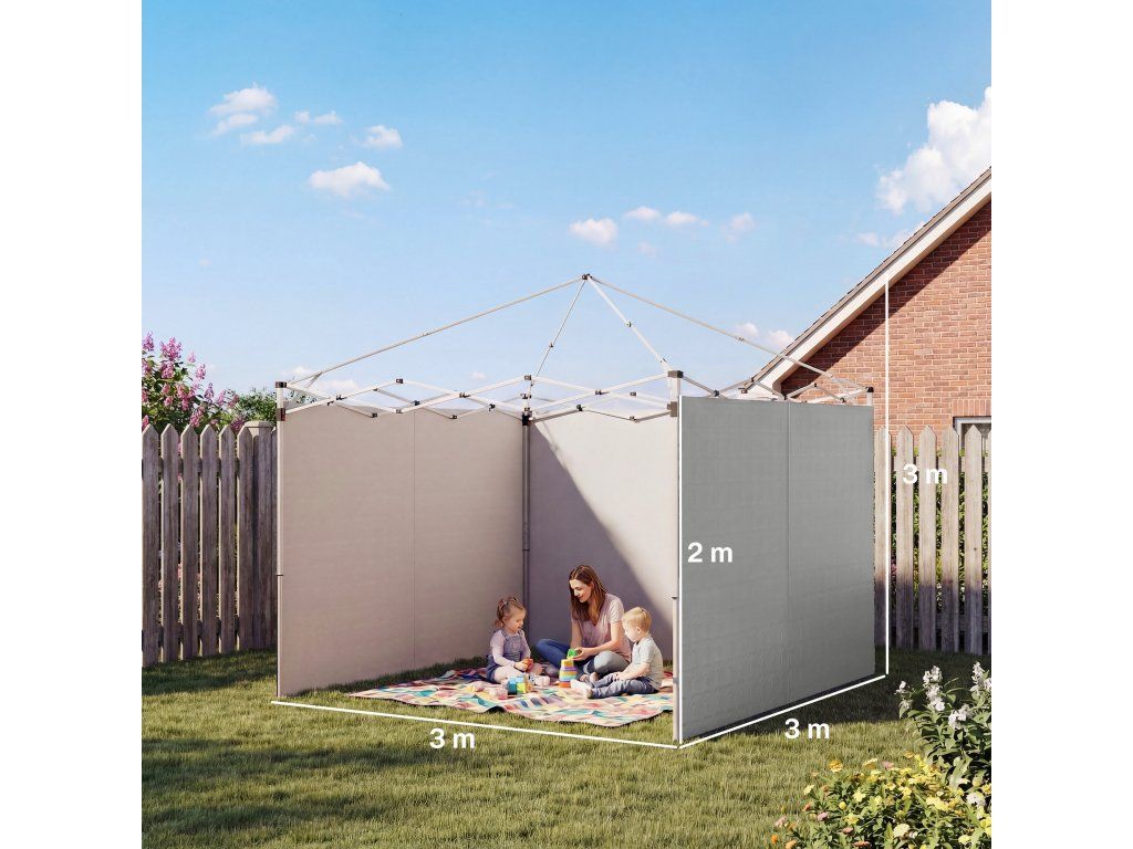 Proměňte svůj vyskakovací altán na soukromé útočiště s bočními stěnami. Tato 3dílná sada se hodí na rámy altánů 3 x 3 m a je ideální pro venkovní akce. Bočnice jsou vyrobeny z postříbřené 210D Oxford tkaniny s UPF 50+ ochranou a poskytují ochranu před škodlivým UV zářením a lehkým deštěm. Snadno se připevňují pomocí přiložených pásků na suchý zip, osvěží nastavení vašeho altánu a poskytují dodatečné soukromí a pohodlí.