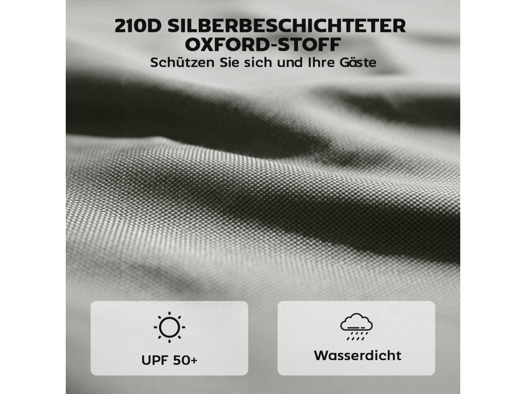 ✔ Oxford tkanina potažená stříbrem 210D pro ochranu před sluncem UPF 50+ a lehkou ochranu proti dešti.