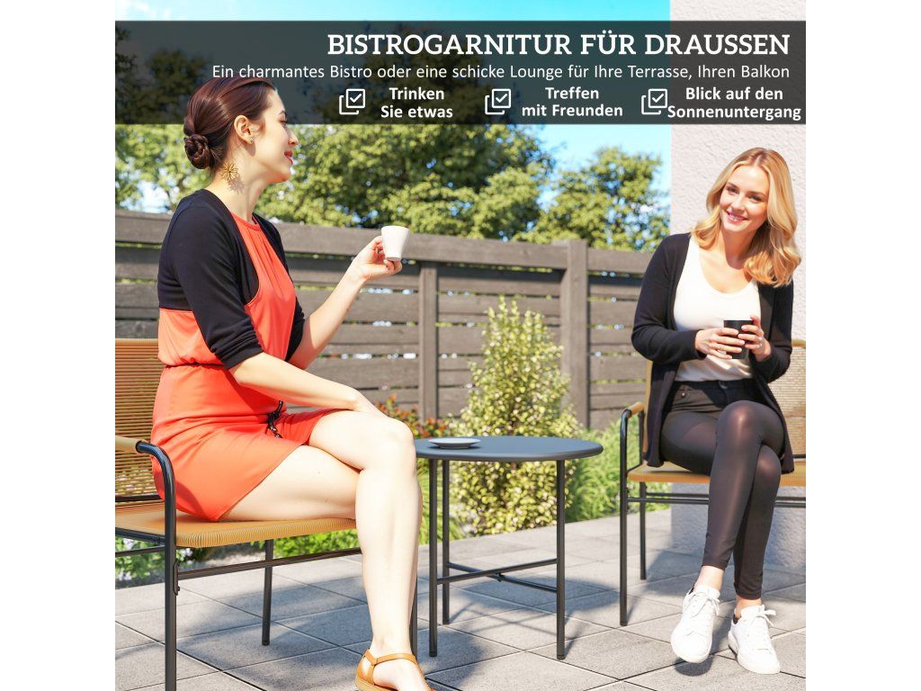 Odolnost: Tato sada balkonového nábytku se stolem a židlemi, vyrobená z ocelového rámu odolného proti korozi a celoročního PE ratanu, předčí tradiční ratan svou pevností a odolností a zajistí tak dlouhodobé venkovní použití.