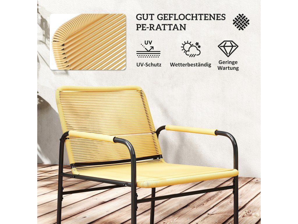 Proměňte svůj venkovní prostor se sadou balkonového nábytku pro 2 osoby. Tato atraktivní sada zahradního nábytku z polyratanu obsahuje dvě pohodlné židle a stylový stůl s kovovou deskou. Náš zahradní nábytek je vyroben z PE ratanu odolného vůči všem povětrnostním vlivům a má rám z nerezové oceli, takže nabízí pohodlí a odolnost – ideální do zahrady, na balkon nebo terasu.