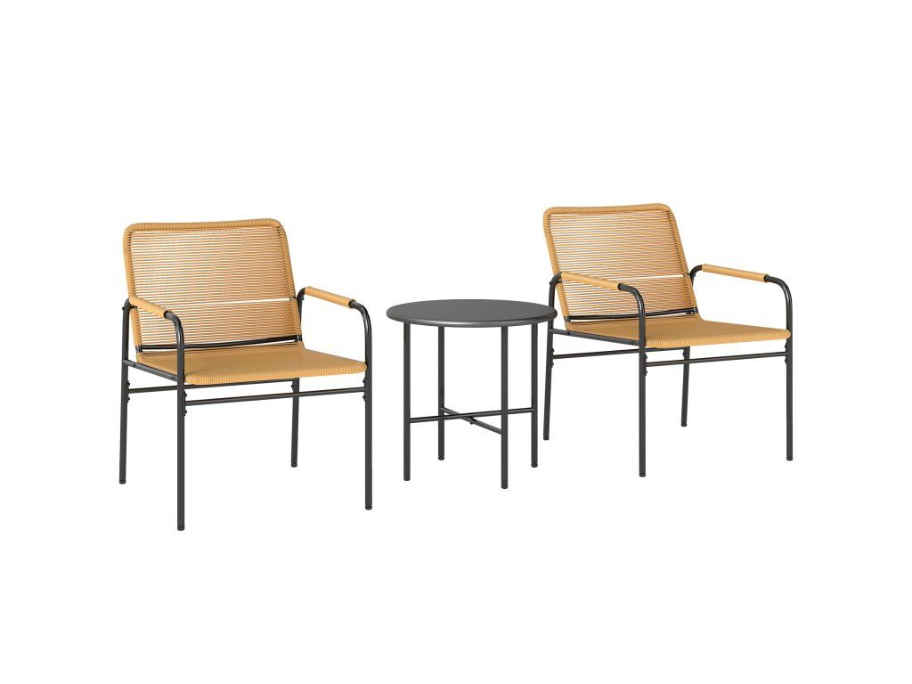 Stylová ratanová bistro sedací souprava: Proměňte svůj venkovní prostor s tímto elegantním 3dílným balkonovým nábytkem Sada sestávající ze dvou pohodlných ratanových židlí a elegantního stolu s kovovým potahem – ideální pro poklidné stolování, přestávky na kávu nebo prostě jen relaxaci.
