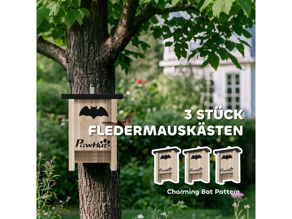 Atraktivní design: Tato sada obsahuje tři budky pro netopýry, každá s okouzlujícím motivem netopýra, který dodá vaší zahradě charakter. Kromě atraktivního vzhledu nabízejí také dostatek prostoru pro odpočinek.