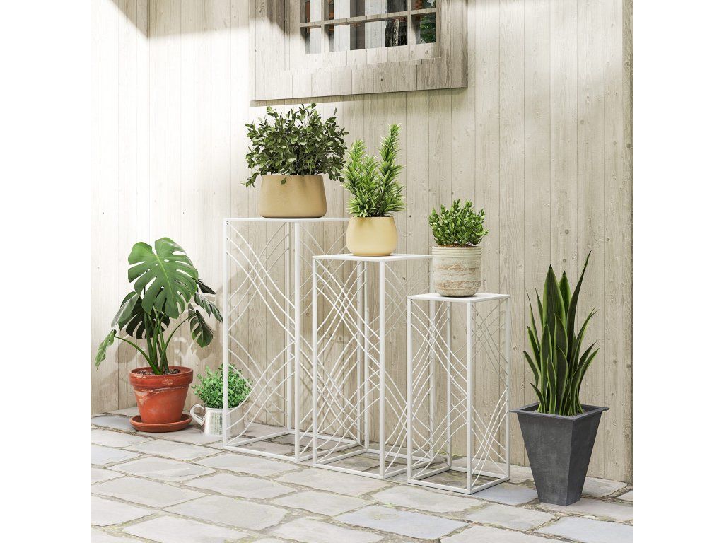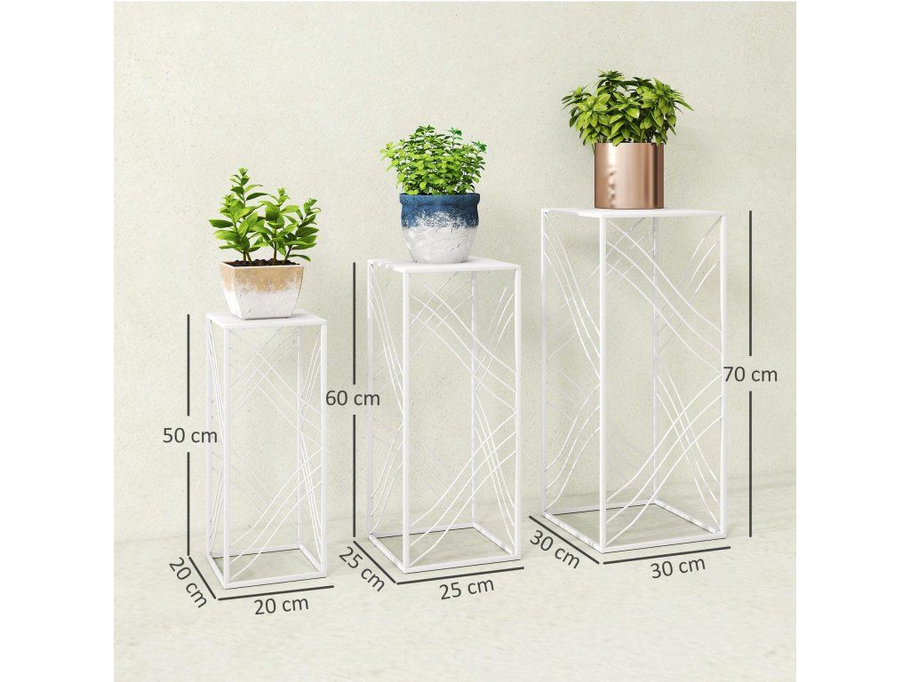Sada 3 kovových stojanů na květiny 50, 60, 70 cm | bílá