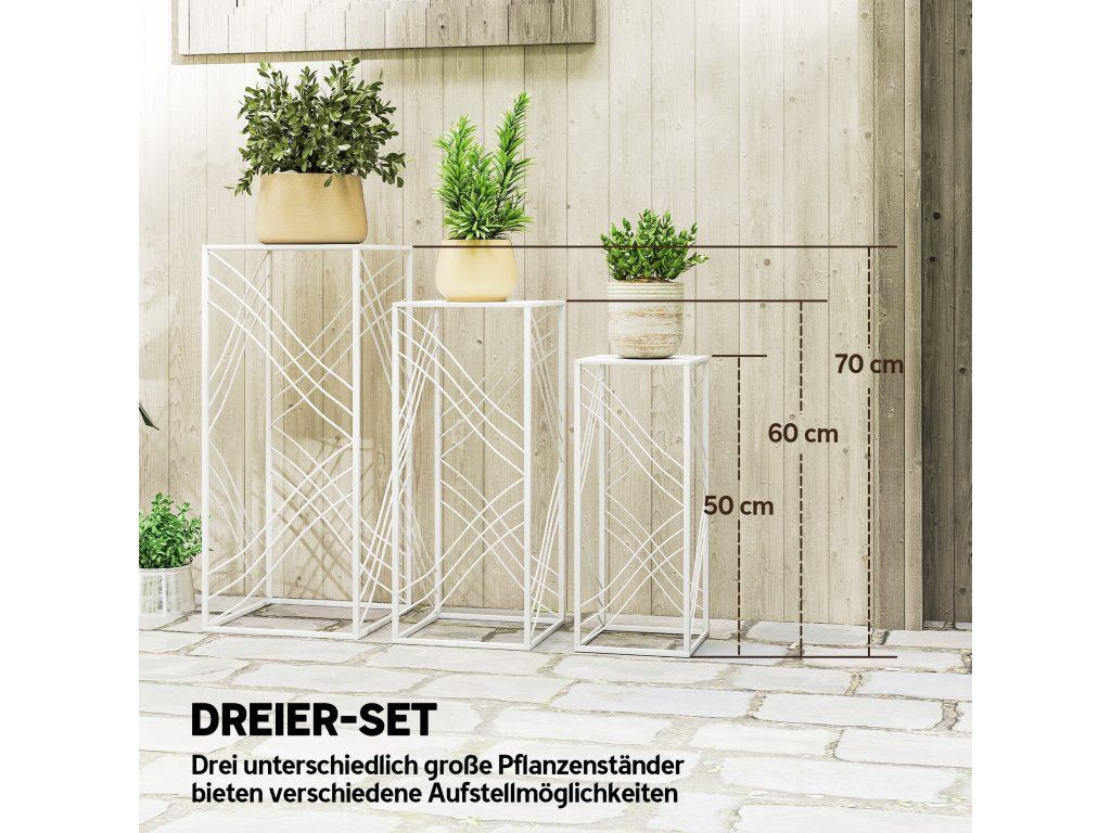 Třídílná sada pro flexibilní vystavení: Tři stojany na rostliny (50 cm, výška 60 cm a 70 cm umožňuje stylové výškové variace pro rostliny, dekorace nebo lampy, aniž by zabíraly místo extra prostor.