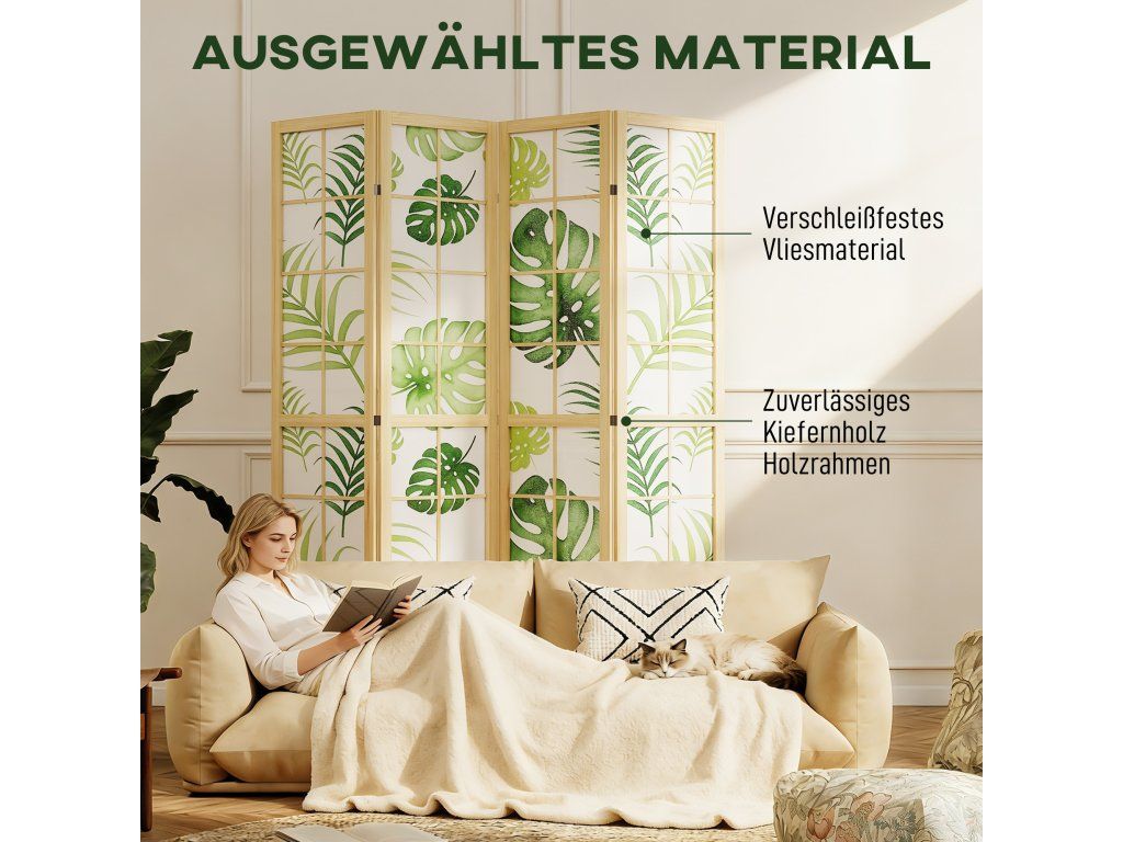 Stabilní a bezpečná konstrukce: Tato dělicí stěna je vyrobena z robustního borovicového dřeva a odolné netkané textilie a nabízí dlouhodobé řešení. Protiskluzové nožičky zajišťují stabilitu na hladkých površích a vytvářejí elegantní dělicí stěnu.