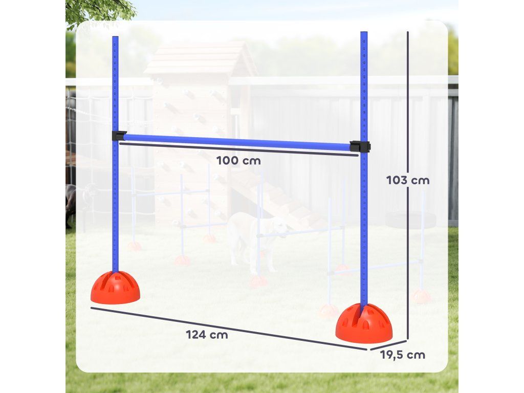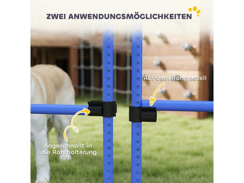 ✔ Škálované tyče sady na agility umožňují snadné nastavení výšky.