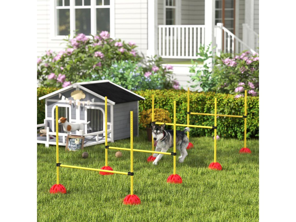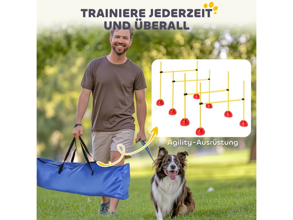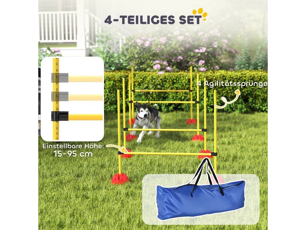 Komplexní kurz agility: Tato sada na agility obsahuje čtyři výškově nastavitelné psí skoky, které otestují dovednosti vašeho psa. Součástí balení je praktická taška pro snadné přenášení a optimální organizaci.