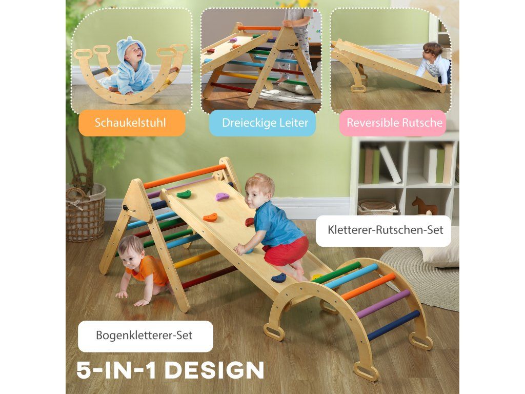 Probuďte ve svém batoleti smysl pro dobrodružství se sadou lezeckých rámů! Tato multifunkční sada 5 v 1 Montessori lezecká konstrukce obsahuje trojúhelníkové a klenuté lezecké konstrukce, houpačku, lezeckou rampu a skluzavku. Tato sada lezeckých rámů vyrobená z kvalitního masivního dřeva nabízí ideální příležitost k lezení v interiéru a podporuje rozvoj a sebevědomí vašeho dítěte!