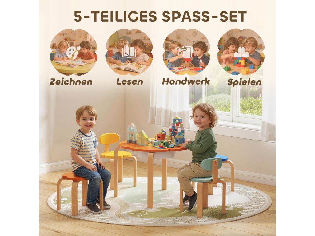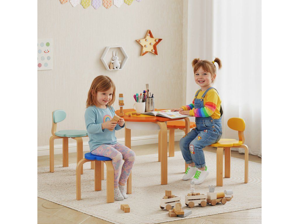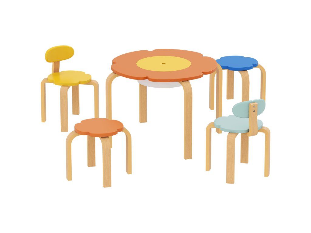 Sada s květinovým motivem: Tato barevná 5dílná sada dětského stolu a židlí poskytuje ideální prostor pro hraní, čtení, jídlo, kreslení nebo společné čtení s rodinou.