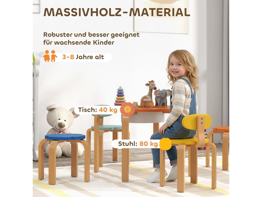 Masivní dřevěný materiál: Každý prvek této dětské sedací soupravy je vyroben z certifikovaného dřeva FSC a je pevný a bezpečný pro aktivní děti. S nosností až 80 kg na sedák a zaoblenými hranami poskytuje bezpečný prostor pro uvolněné aktivity.