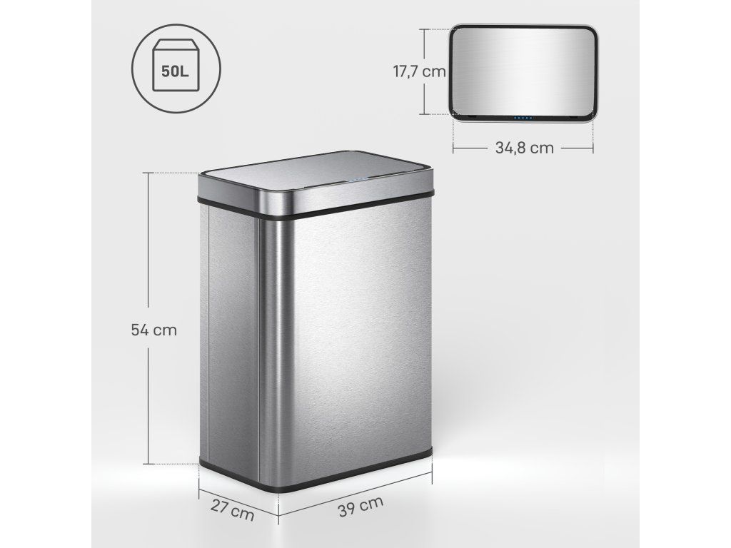 Senzorový odpadkový koš 50 l | stříbrný