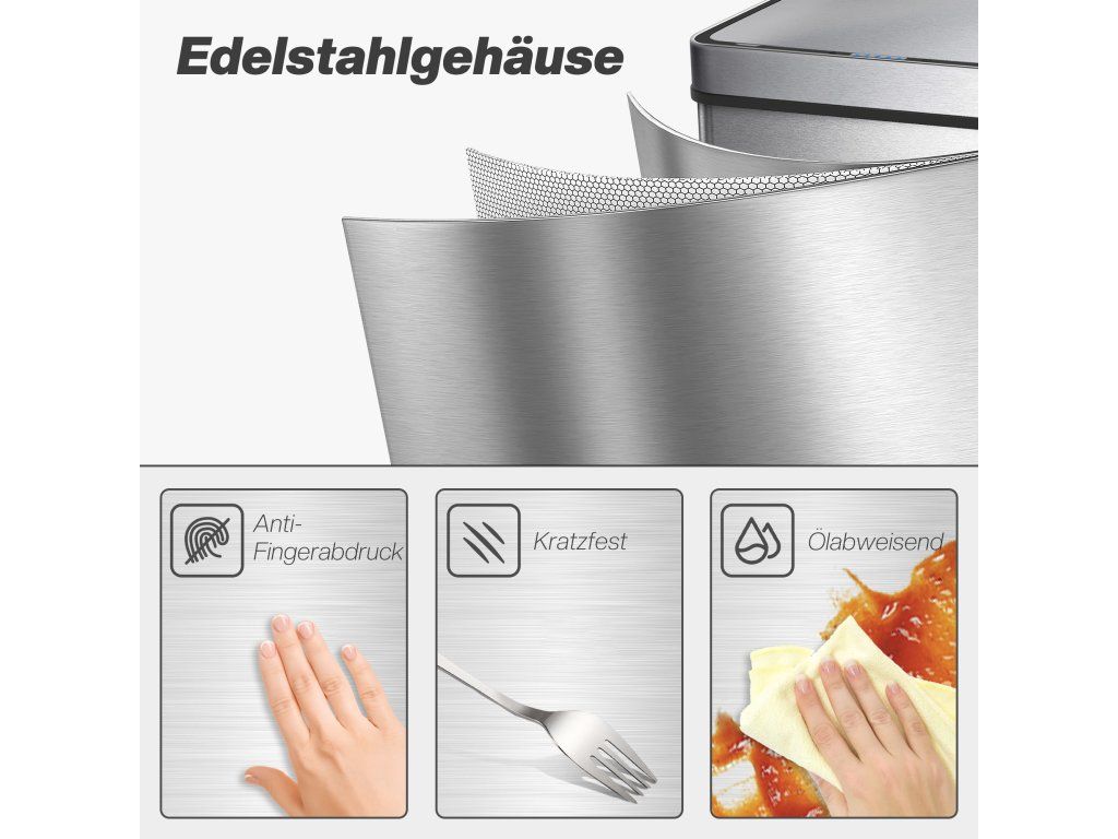Už vás nebaví špinavé ruce a nepříjemný zápach, zvláště když se očekávají hosté? Odpadkový koš se senzorem aktivuje a otevírá se bez dotyku, což zajišťuje čistotu. Vrstva aktivního uhlí pohlcuje pachy a udržuje vaši kuchyň svěží. Kartáčovaná nerezová ocel koše je odolná proti otiskům prstů a snadno se čistí. Díky jednoduchému, modulárnímu designu si můžete každý den užívat uklizenou a hygienickou kuchyň.