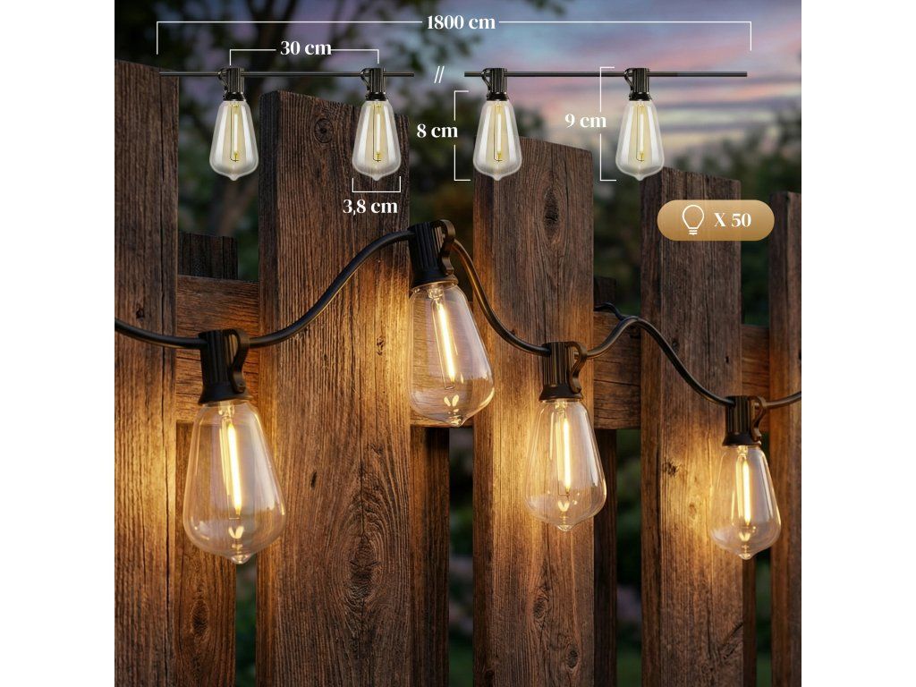 ✔ Obsahuje 50 vintage Edisonových žárovek na 18 m dlouhém kabelu, které vytvářejí teplou retro atmosféru ve vašem obývacím pokoji.