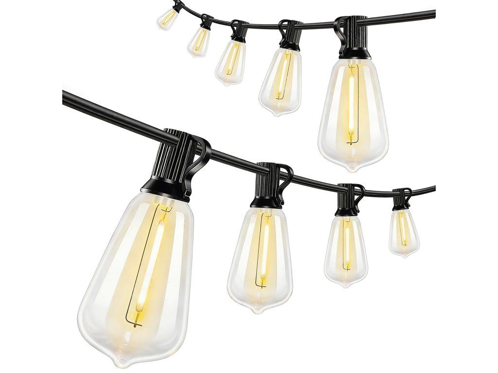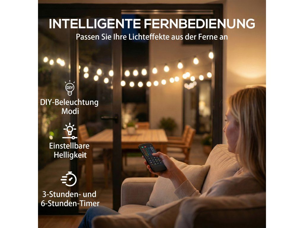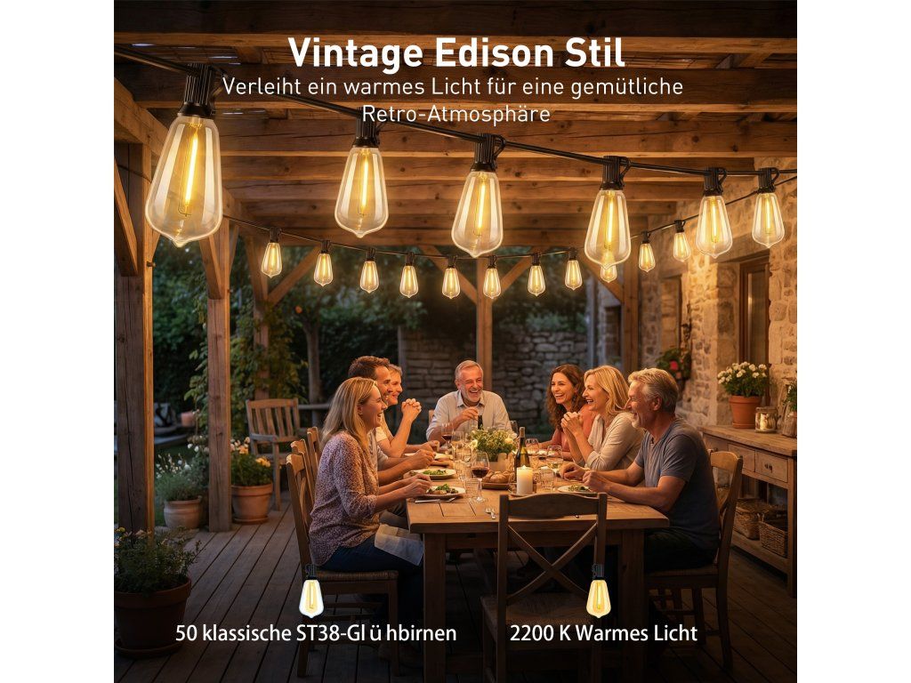Vintage Edison styl: 18m LED řetězová světla s 50 žárovkami ST38 poskytují teplé světlo s teplotou 2200K a dodávají vašemu obývacímu pokoji útulnou retro atmosféru, která předčí běžné síťové osvětlení.
