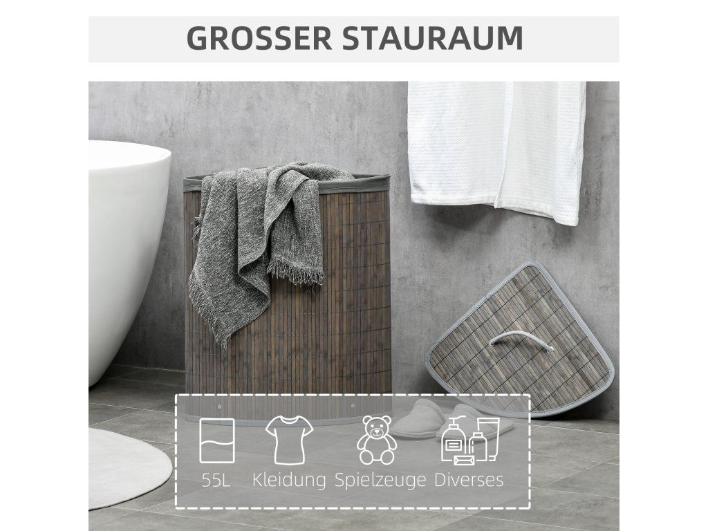 Uskladněte si prádlo elegantně a diskrétně díky našemu koši na prádlo. S velkorysým objemem 55 litrů nabízí dostatek prostoru pro stylové a nenápadné uložení prádla. Bambusový rám dodá vašemu domovu nádech elegance. Odnímatelná vložka vám také umožní snadno přenést prádlo do pračky, aniž byste museli přemisťovat celý koš.