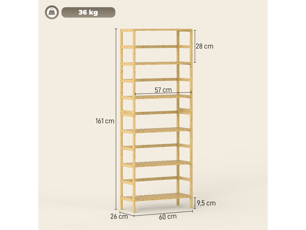 ✔ Maximální nosnost: 6 kg (na polici), 36 kg (celkem)