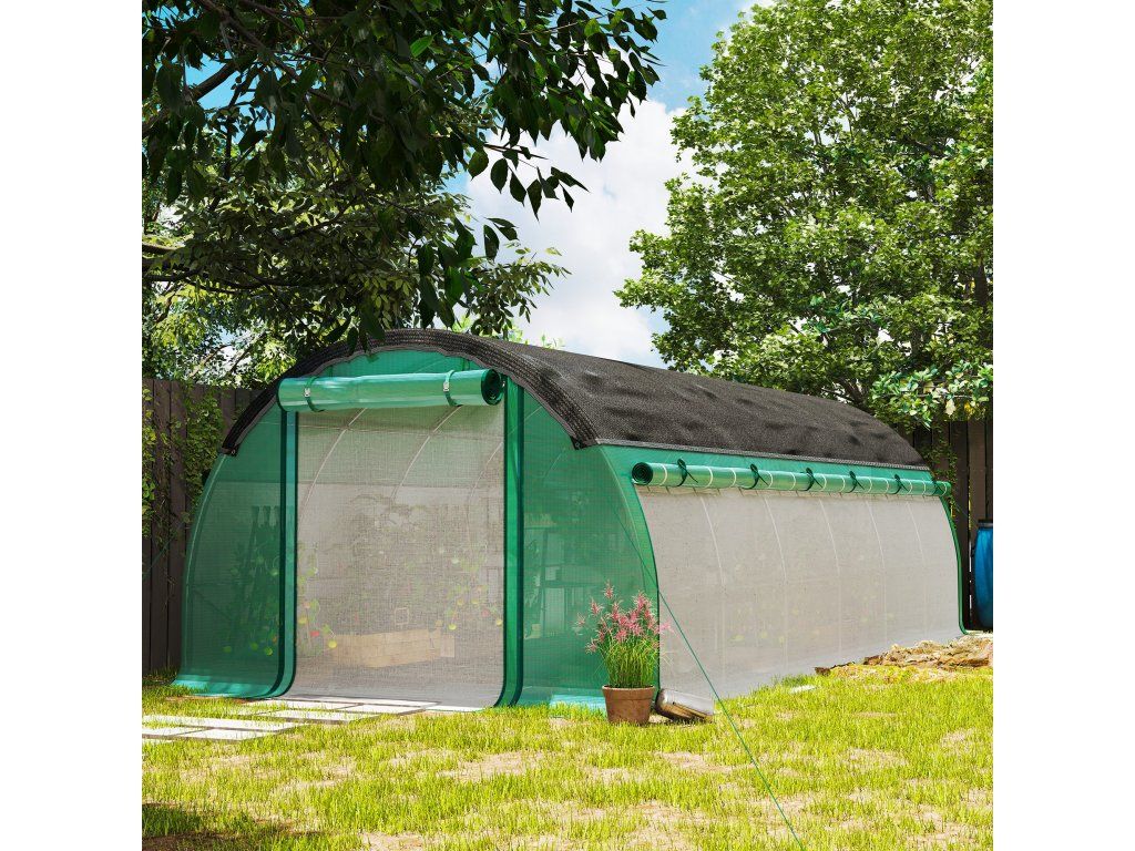 Zažijte celoroční zahradničení s dostatkem prostoru v tomto skleníku pro vaši zahradu. Tento polystyrenový tunelový skleník je vybaven sluneční clonou odolnou proti UV záření a několika síťovanými otvory pro vynikající větrání a snadný přístup. Plastový plášť skleníku také propouští 85 % slunečního světla. Ideální pro každého, kdo hledá prostorný skleník pro pěstování ve svém zahradním ráji!