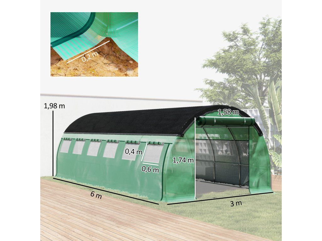 Polytunelový skleník 6 x 3 x 2 m | zelený
