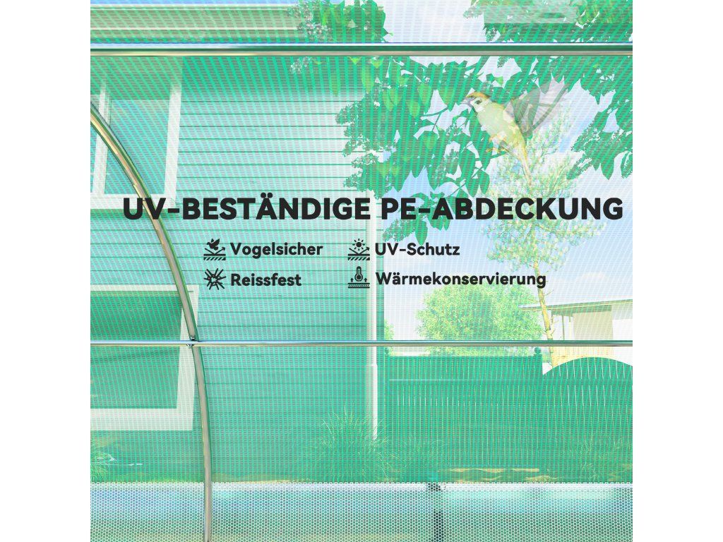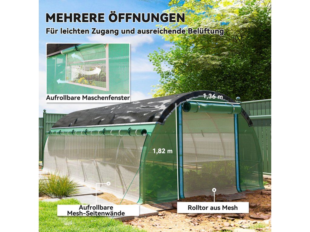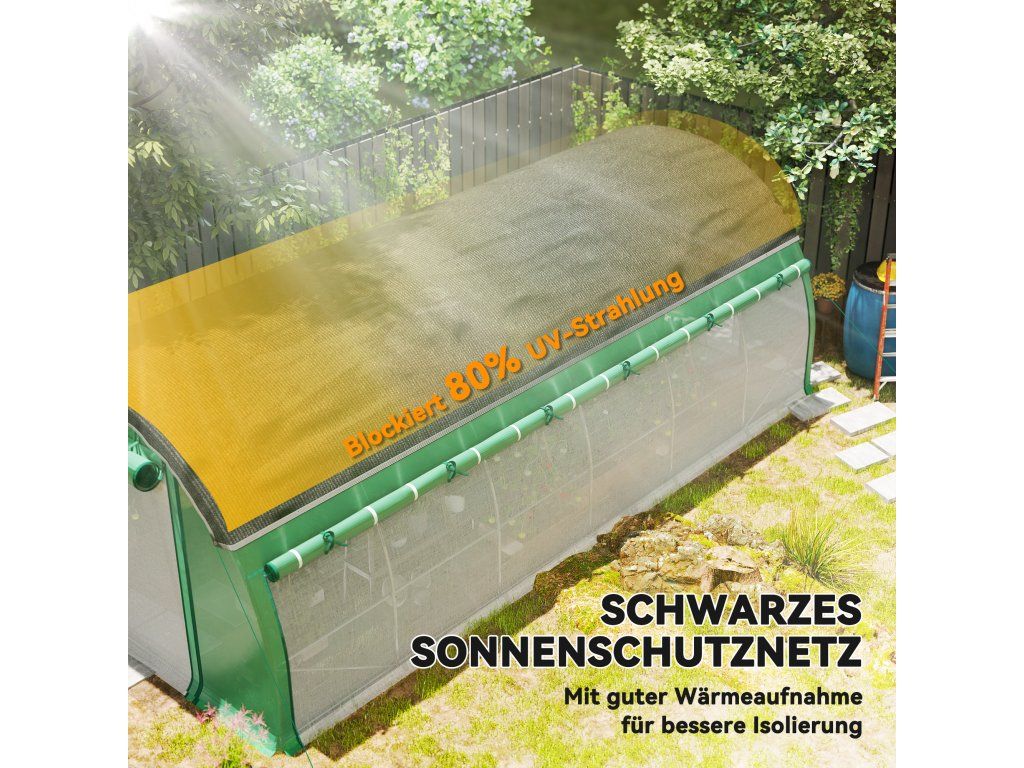 Ochrana proti slunci: Přídavná síť proti slunci polytunelového skleníku blokuje až 80 % UV záření a účinně chrání proti silnému slunečnímu záření, a proto je ideální pro horké letní měsíce.