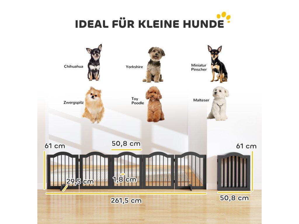 Všestranné použití: Ať už se jedná o dveře, vchody, chodby, ložnice nebo schodiště – tato branka pro psy je ideálním řešením pro bezpečné uložení psů do výšky ramen 41 cm.