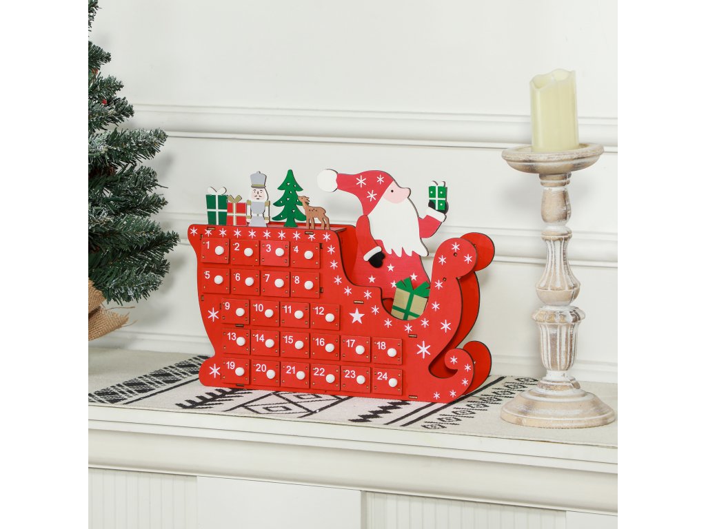 Originální adventní kalendář ve tvaru saní se Santou je krásnou vánoční dekorací i praktickým pomocníkem při odpočítávání dnů do Štědrého dne.