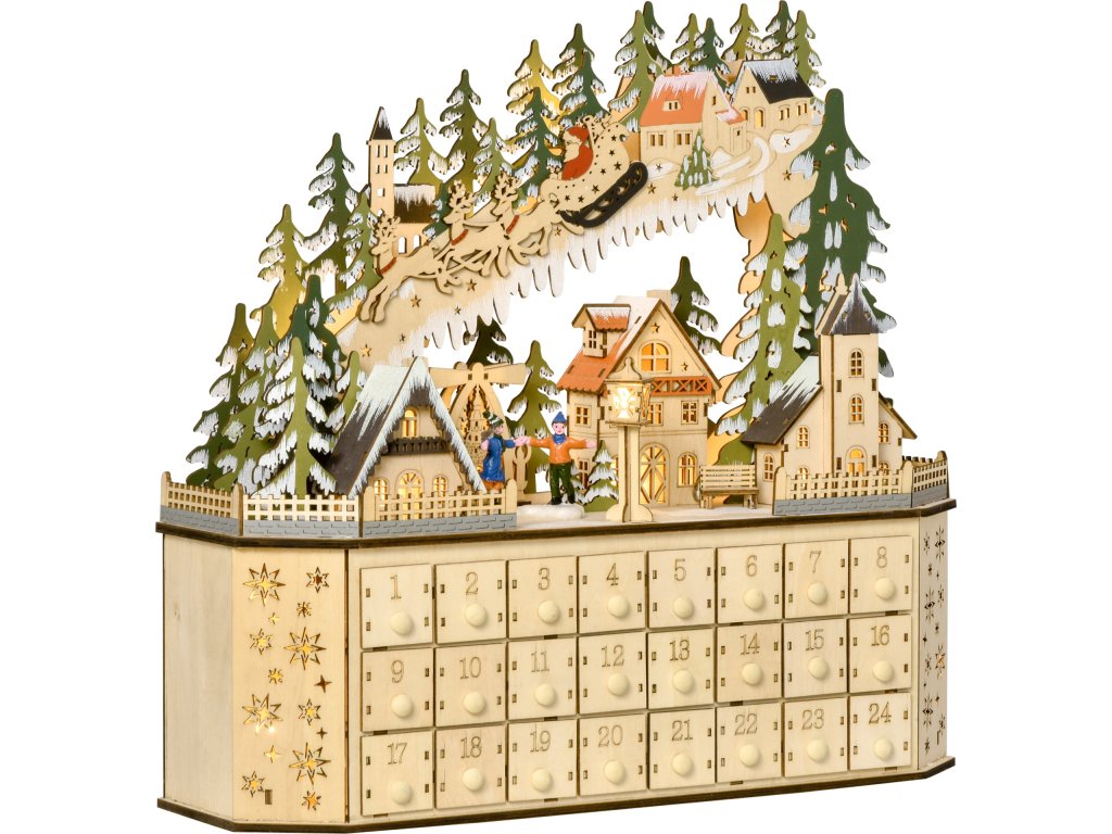 Adventní kalendář Vesnice s 24 přihrádkami | 45 x 13 x 43 cm