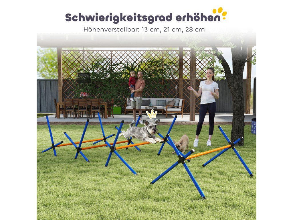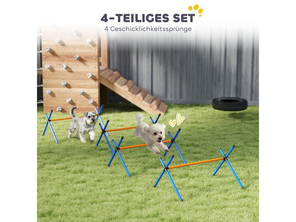 4dílná sada pro výcvik psů: Se čtyřmi překážkami pro psy, které lze nastavit v přímé linii pro sprinty nebo v různých vzdálenostech pro hravou rozmanitost, můžete zvýšit soustředění svého psa během vzrušujících tréninků na zahradě nebo uvnitř.