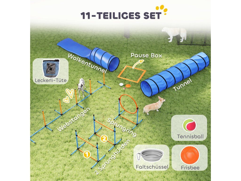 ✔ Sada pro psí agility obsahuje dva tunely, překážky a hrazdy pro kompletní a profesionální dráhu.