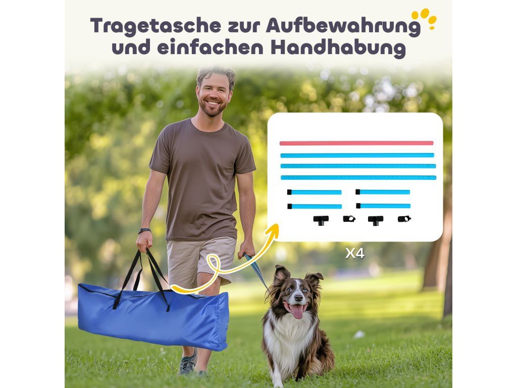 Přenosná taška součástí balení: Součástí sady pro psy na agility je přepravní taška, ideální pro přepravu sady do parku nebo jednoduše na vlastní zahradu. Poskytuje také pohodlné uložení všech jednotlivých komponentů.