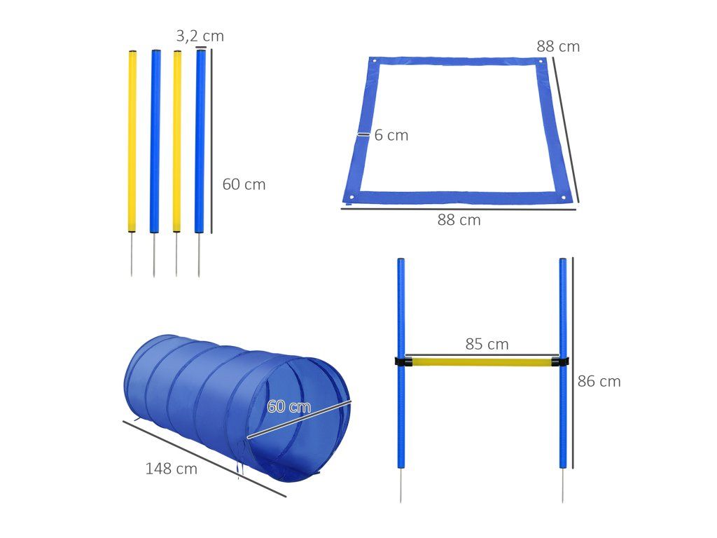 ✔ 1 x tunel + 4 x slalomové tyče + 1 x sada překážkových tyčí + 1 x startovní plocha.
