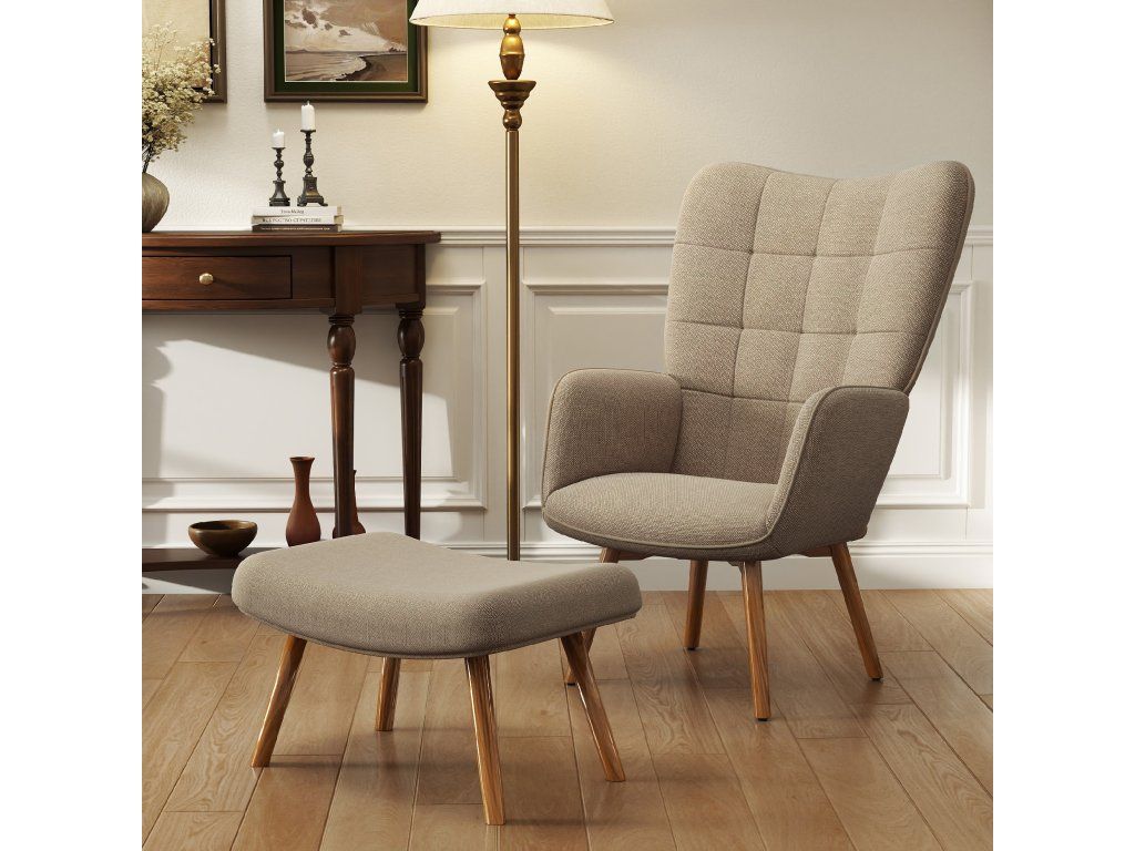 Vyložte si nohy: Tato sada křesla a podnožky s prošívaným designem obsahuje akcentní křeslo a odpovídající podnožku, které vám umožní pohodlně se posadit, vyložit si nohy a zapomenout na stres dne.