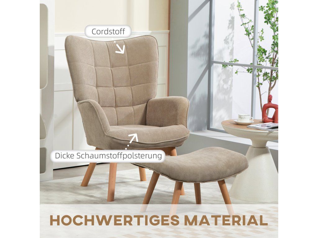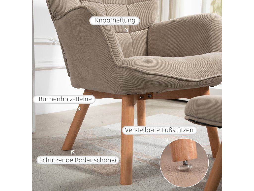 Poutavé: Krásný design s bukovými nohami a klasickou světle hnědou povrchovou úpravou. Toto křeslo s opěradlem nabízí výjimečné pohodlí pro relaxaci a je ideální pro odpočinek, ať už sledujete televizi, čtete knihu nebo jen relaxujete.