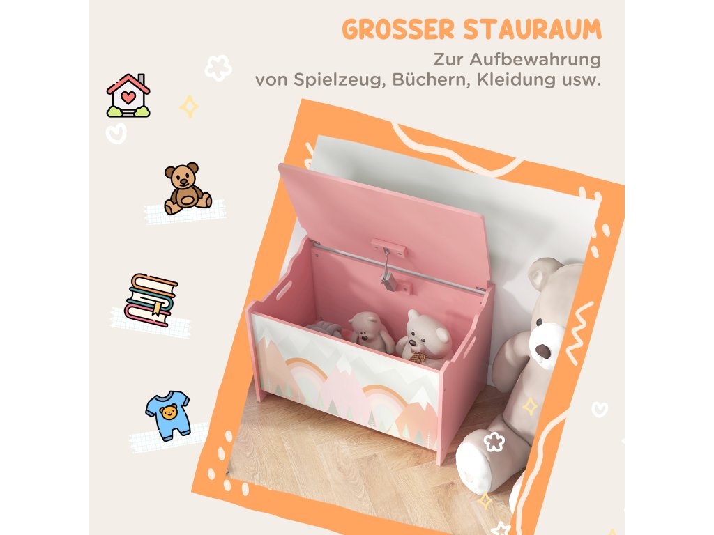 Odolná konstrukce: Tato truhla na hračky s víkem je robustně vyrobena a slibuje dlouhodobé a spolehlivé používání. Unese až 20 kg.