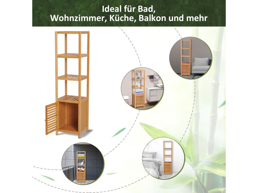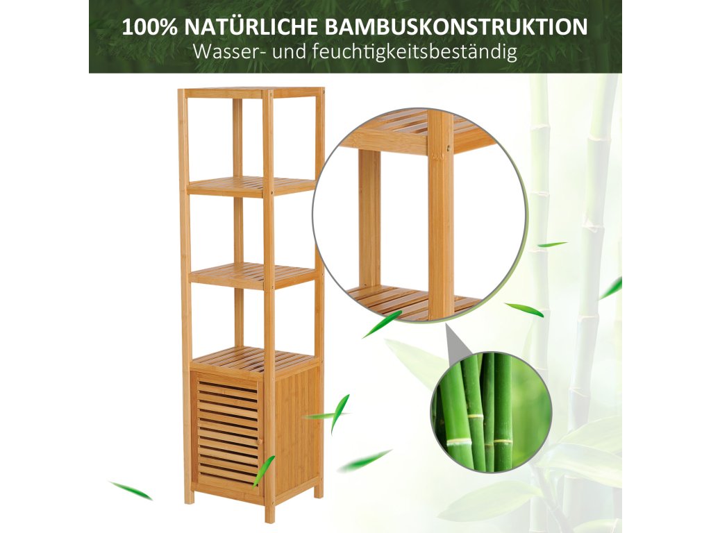 100% přírodní materiál: Díky krásnému, hladkému povrchu je tato koupelnová police přirozeně robustní, odolná a odolná vůči vlhkosti. Lamelové dvířka umožňují volnou cirkulaci vzduchu a zabraňují hromadění vlhkosti.