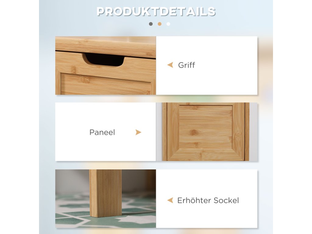 Bambusová konstrukce: Tato praktická, štíhlá skříňka pod umyvadlo je vyrobena z odolného přírodního bambusu, ideální pro každodenní použití.