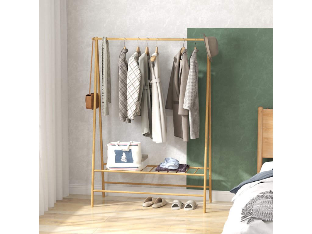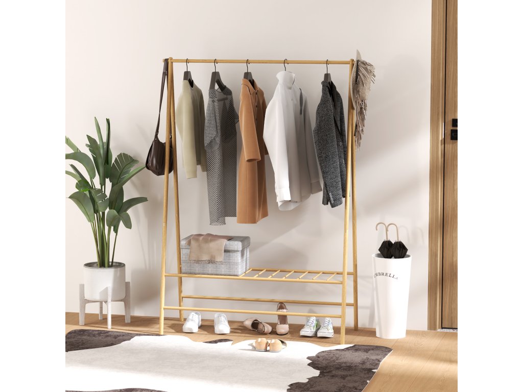 Botník je součástí balení: Tento věšák na oblečení má spodní laťkovou polici, která úhledně a přehledně uloží až čtyři páry bot až do velikosti EU44 a udrží je snadno po ruce.