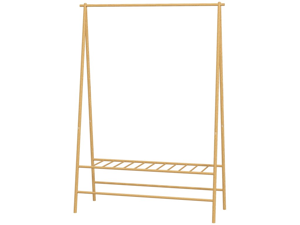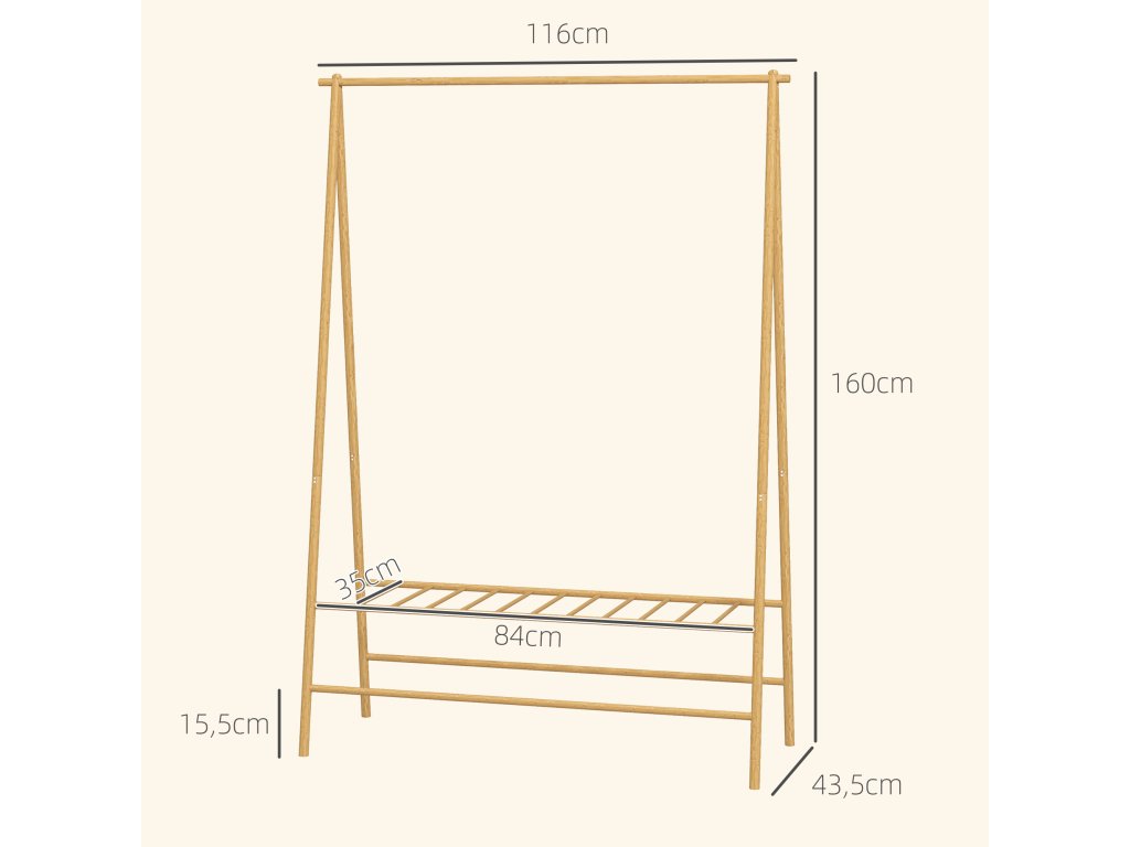 ✔ Bambusový rám věšáku se vyznačuje stylovým A-rámem pro stabilitu.