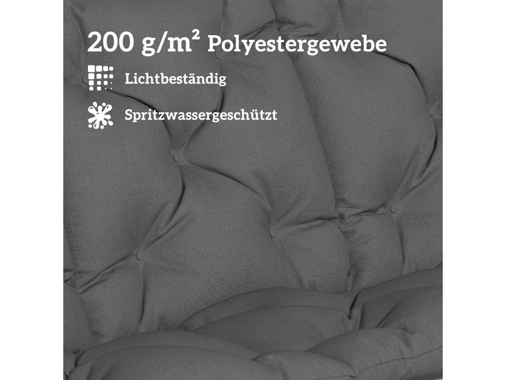 Bezpečný, protiskluzový design: Osm pevných popruhů bezpečně připevňuje venkovní sedák k houpací židli, čímž zabraňuje uklouznutí a odfouknutí větrem a zajišťuje bezstarostné pohodlí při sezení i za větrného počasí.