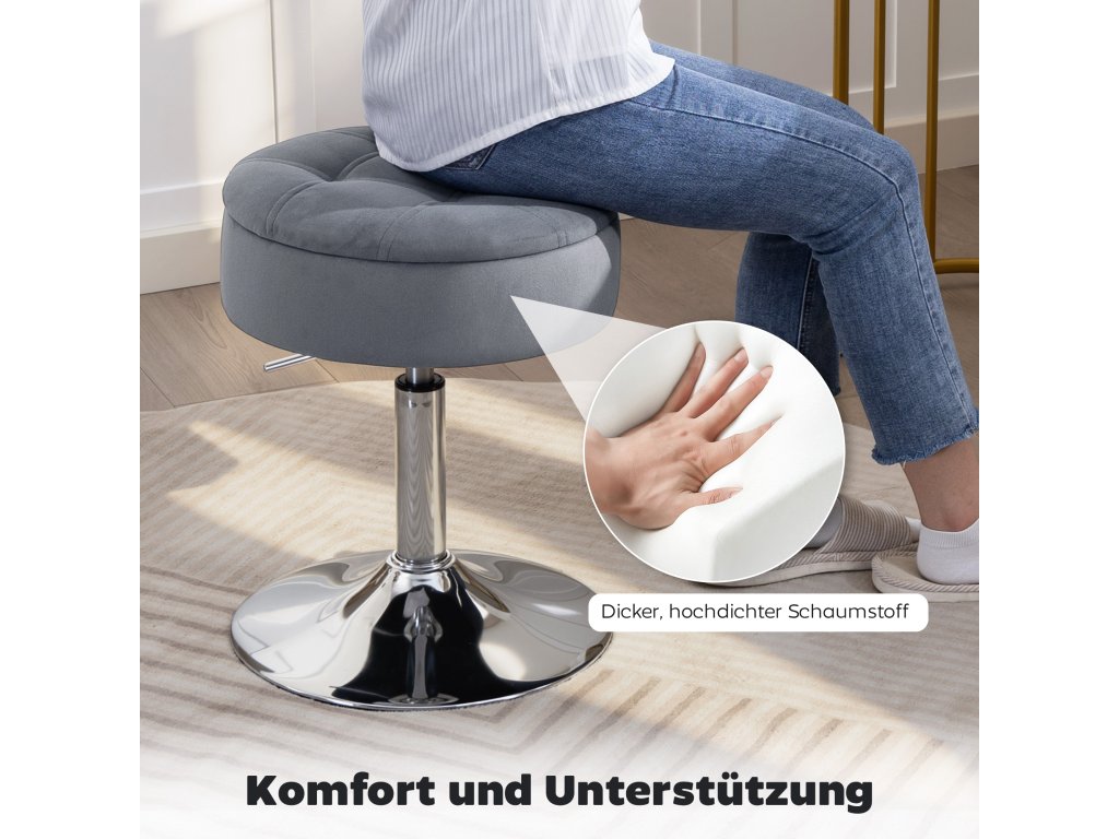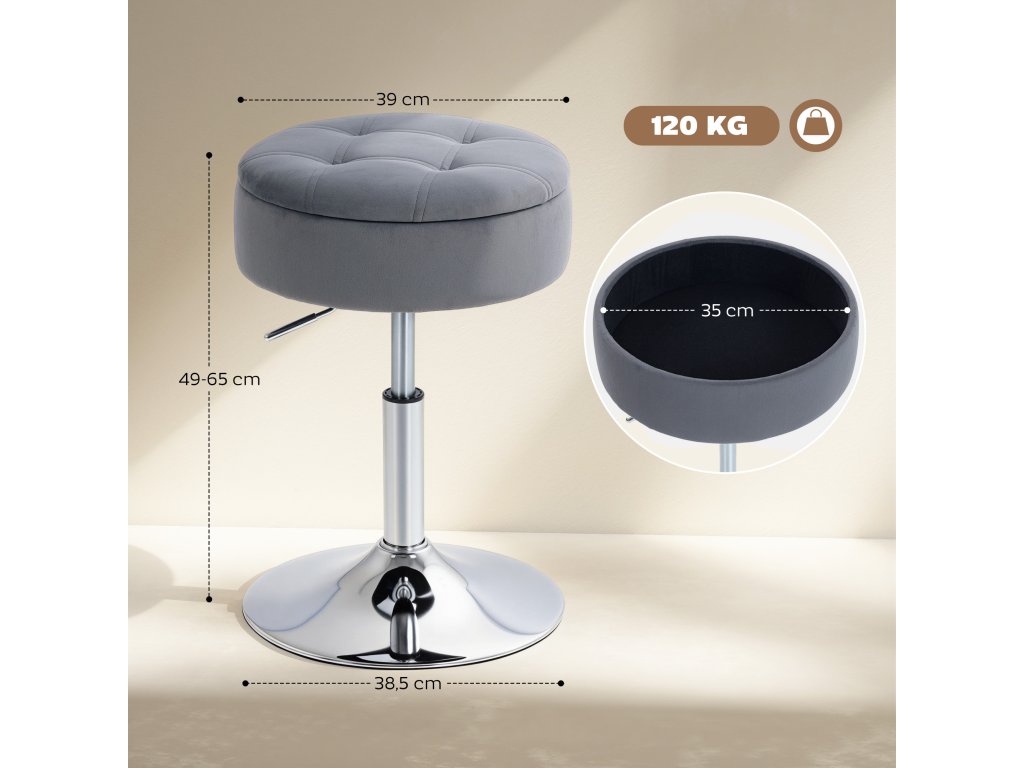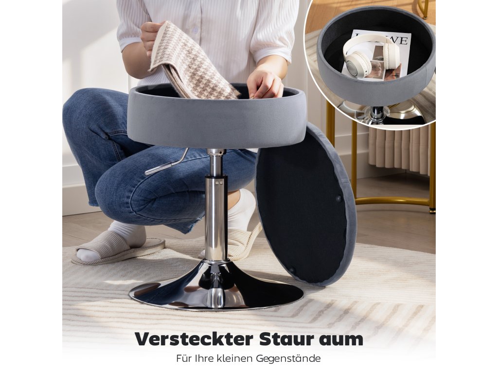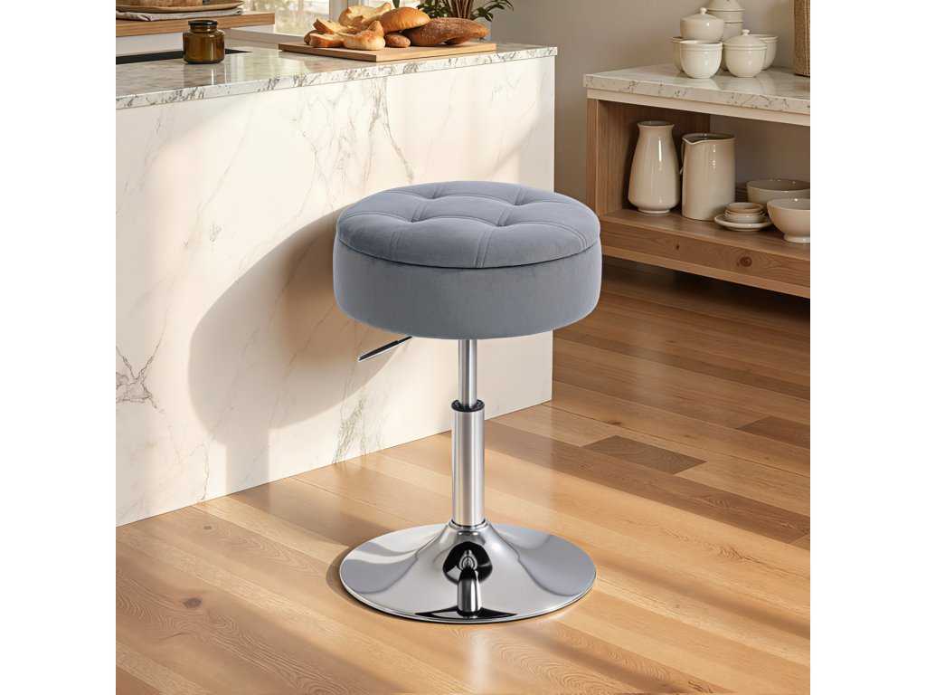 ✔ Výškově nastavitelný sedák barové židle se zvedá a odhaluje skrytý úložný prostor.