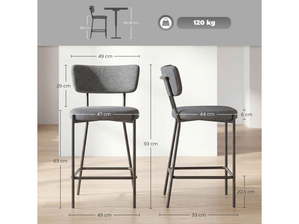 ✔ Měkké čalounění barové židle s texturou lnu zajišťuje prodyšné a pohodlné sezení.