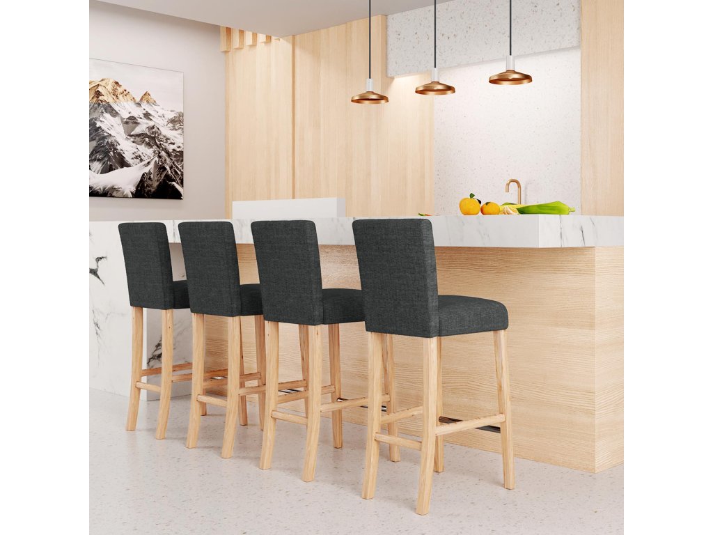 POBAVIT SVÉ HOSTY: Na těchto židlích se bude vaše rodina a přátelé rádi bavit při koktejlech a večeřích.IDEÁLNÍ VÝŠKA: Výška sedadla 71 cm s nohami z masivního dřeva a pohodlnou opěrkou nohou pro co nejpohodlnější polohu při sezení.POSÍLENÁ NOŽNÍ OPĚRKA A VYSOKÁ ZATÍŽLIVOST: Podpůrná kovová tyč, přední opěrka nohou je robustnější a odolnější proti opotřebení; max. nosnost 130 kg.OPTIMÁLNÍ POHODLÍ: Sedák (4 cm) a opěradlo (2,5 cm) jsou polstrovány extrémně měkkou pěnou, která vám zajistí pohodlí i po dlouhé době sezení.PLSTĚNÉ PODLOŽKY PRO SNÍŽENÍ HLUKU: Účinně snižují hluk způsobený taháním nebo tlačením židle; zabraňují klouzání a poškrábání podlahy.| Kategorie: | Barové židle |