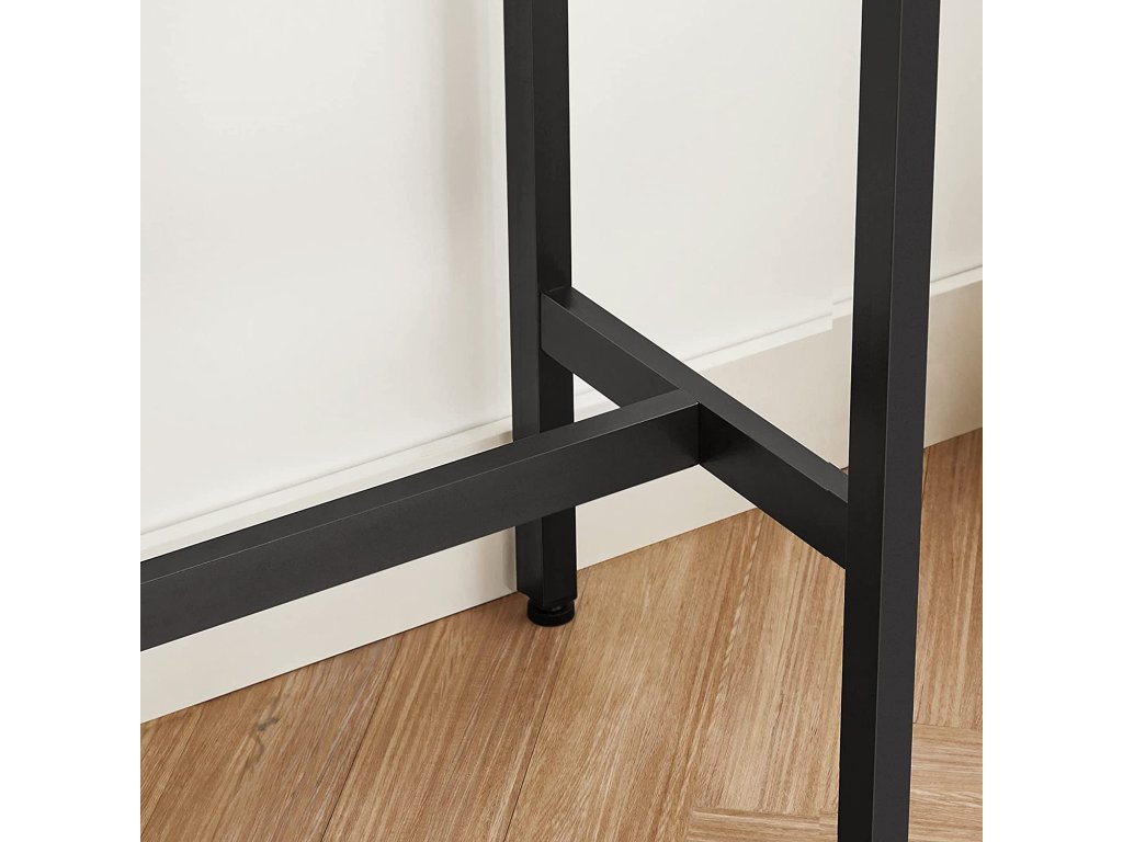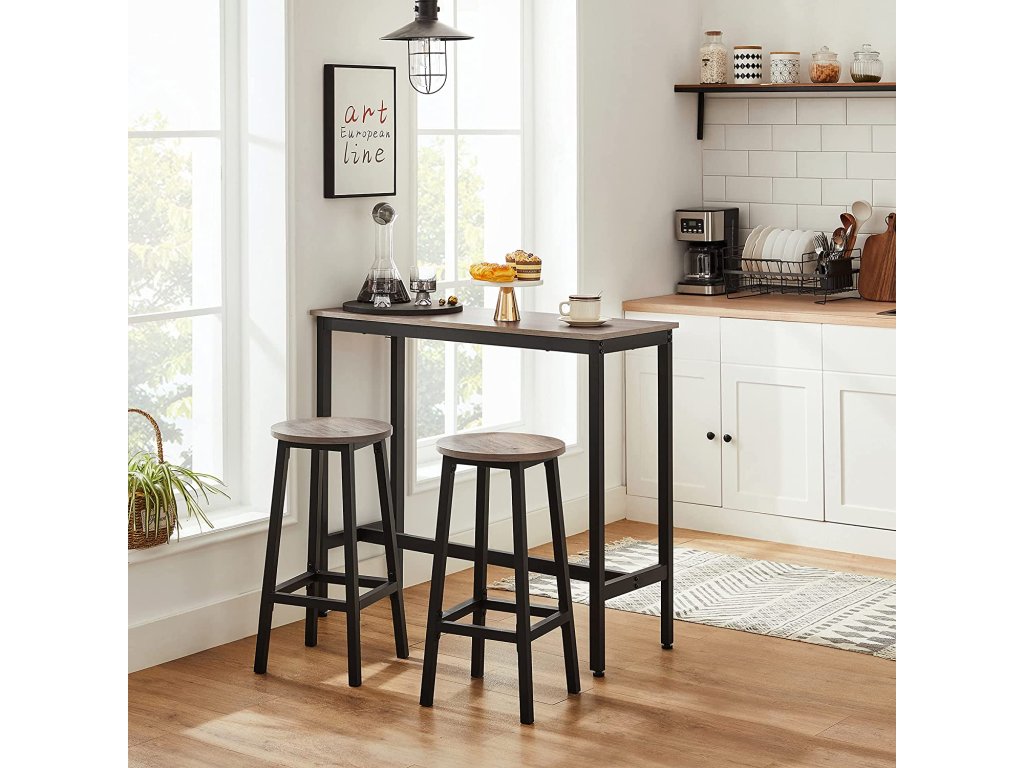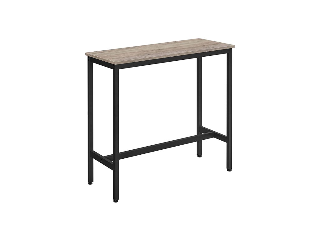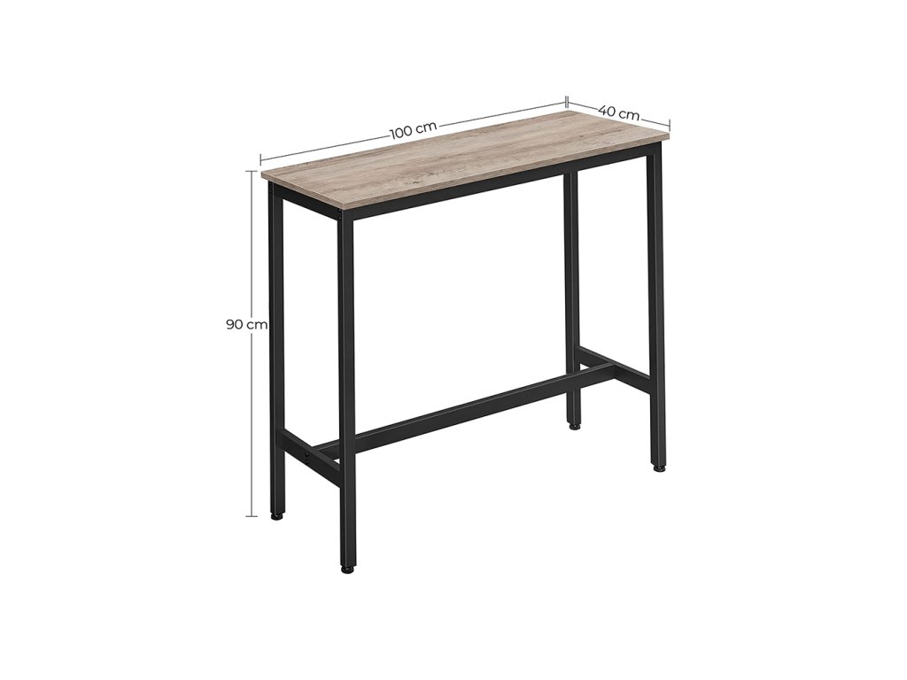 Zcela nová úroveň: Tento jednoduchý, ale působivý barový stůl se štíhlými ocelovými nohami o tloušťce 25 x 25 mm a stylovou rustikální hnědou povrchovou úpravou posune vaši jídelnu na novou úroveň; brzy budete jíst v pohodlné výšce;Malá kuchyně? Zbývá vám v kuchyni nebo v jídelně jen málo místa? Žádný problém! Tento úzký barový stůl je hluboký pouze 40 cm je ideální pro malé jídelny a zároveň nabízí velkou plochu pro talíře, šálky a příbory.