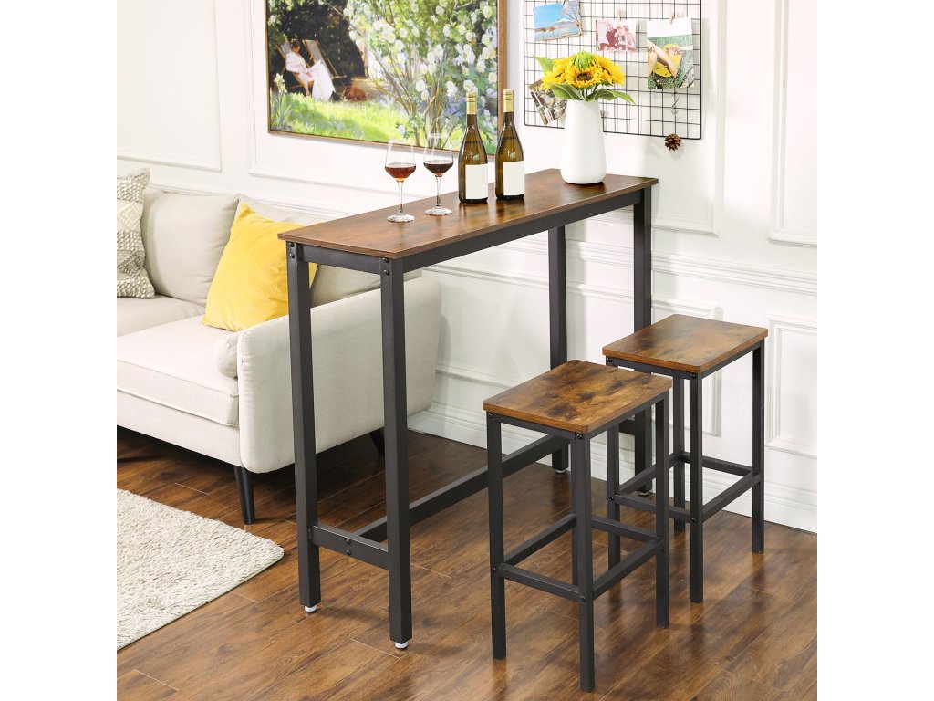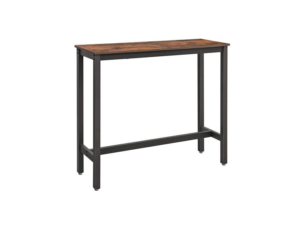 Barový stůl, úzký obdélníkový barový stůl, kuchyňský stůl, vysoký jídelní stůl, robustní kovový rám, 120 x 40 x 100 cm, snadná montáž, průmyslový design, rustikální hnědá a černá.