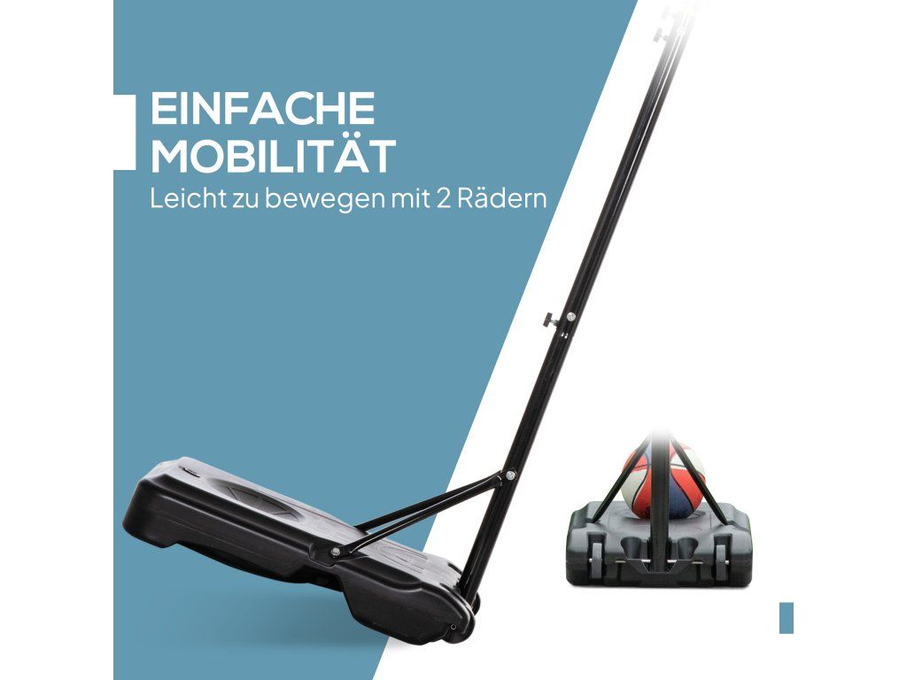Vestavěná kolečka: Díky integrovaným kolečkům na spodní straně lze volně stojící basketbalový koš snadno a rychle přesunout na požadované místo jednou osobou.